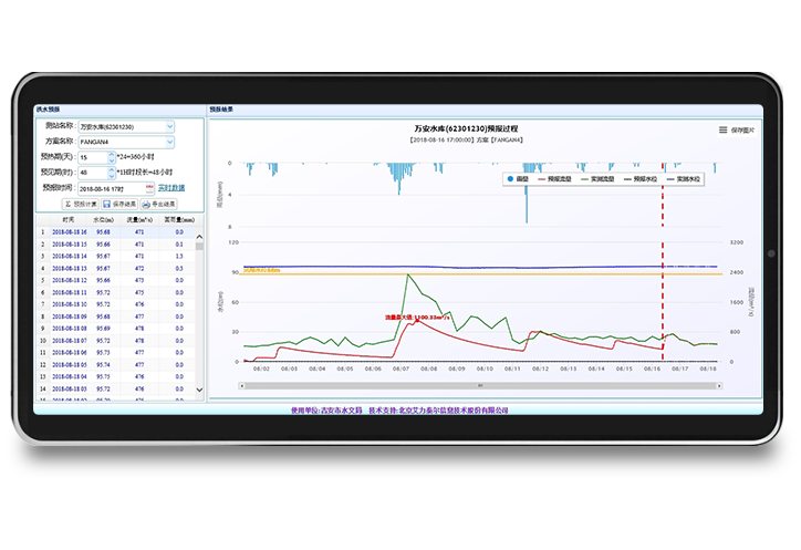 系统融合新安江模型、降雨径流相关图、马斯京根法、地貌单位线等多种模型,具有自动定时预报、人工干预 交互预报、实时校正等功能,为防灾减灾提供“预报、预警”功能,用户覆盖山东、江西、广西、山西、陕西、新疆等地。